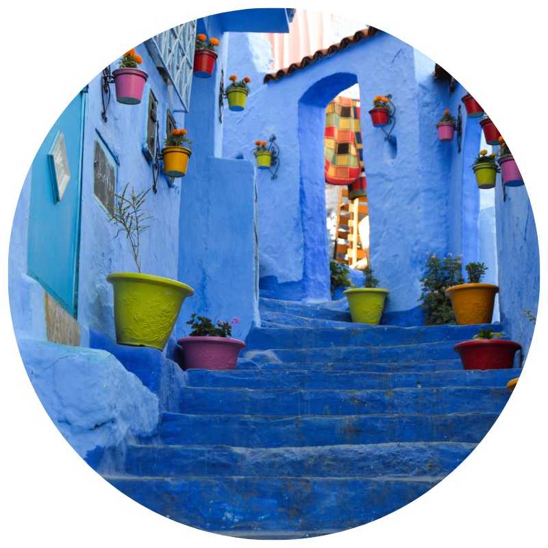 The blue city or Chefchaouen, its passageways and architecture are one of a kind. Few miles away, the Cascades of Akchour; a must-see.