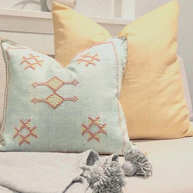The Beni Ourain pillow is a characteristic piece in Moroccan decor. The original Beni Ourain pillows are black and white and entirely handmade, they are made using wool dyed with natural colours . The long manufacturing process and the quality of the materials can make Beni Ourain pillows a little expensive, but believe me, they are wonderful! They are very durable, ideal for indoor and outdoor spaces, and most importantly they stand out immediately inside the space !!! The cost of an authentic Beni Ourain ranges from 40 euros and up for a size of 40 cm x 40 cm.