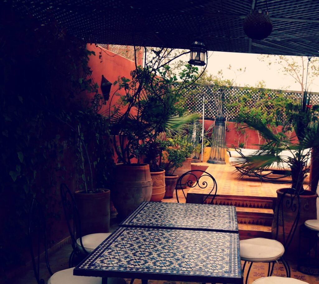 Όταν για πρώτη φορά πήγα στο Μαρόκο λάτρεψα την διακόσμηση των εξωτερικών χώρων . Κάθε φορά που γυρίζω φροντίζω το Airbnb που κλείνω να έχει ένα άνετο και όμορφο αίθριο. Είναι το αγαπημένο μου μέρος όπου παίρνω το πρωινό μου , χαλαρώνω ακούγοντας μουσική σχεδιάζοντας την εξόρμηση της ημέρας ,η διαβάζω ένα βιβλίο πίνοντας μαροκινό τσάι μέντας. Ένας ήρεμος χώρος που είναι εύκολο να αλλάζει κανείς την διακόσμηση τακτικά, καθώς η διακόσμηση στο Μαρόκο είναι ένα εθνικό χόμπι και σου δίνει την δυνατότητα να προσθέτεις μικρά αντικείμενα ,να αλλάζεις χρωματικούς συνδυασμούς η ακόμη να παντρεύεις διαφορετικά στυλ, δίνοντας στον χώρο μια ζεστή στιλάτη ατμόσφαιρα. Η αυθεντική μαροκινή διακόσμηση ενός εξωτερικού χώρου παίζει πολύ με τα χρώματα, τις υφές και τα φυτά δημιουργώντας έτσι διαφορετικές ατμόσφαιρες. Το στυλ μπορεί να είναι κομψό με μια απλή παλέτα χρωμάτων ή μποέμ παίζοντας με πολλά χρώματα. Και στις δύο περιπτώσεις, δημιουργεί έναν ζεστό εξωτερικό χώρο.