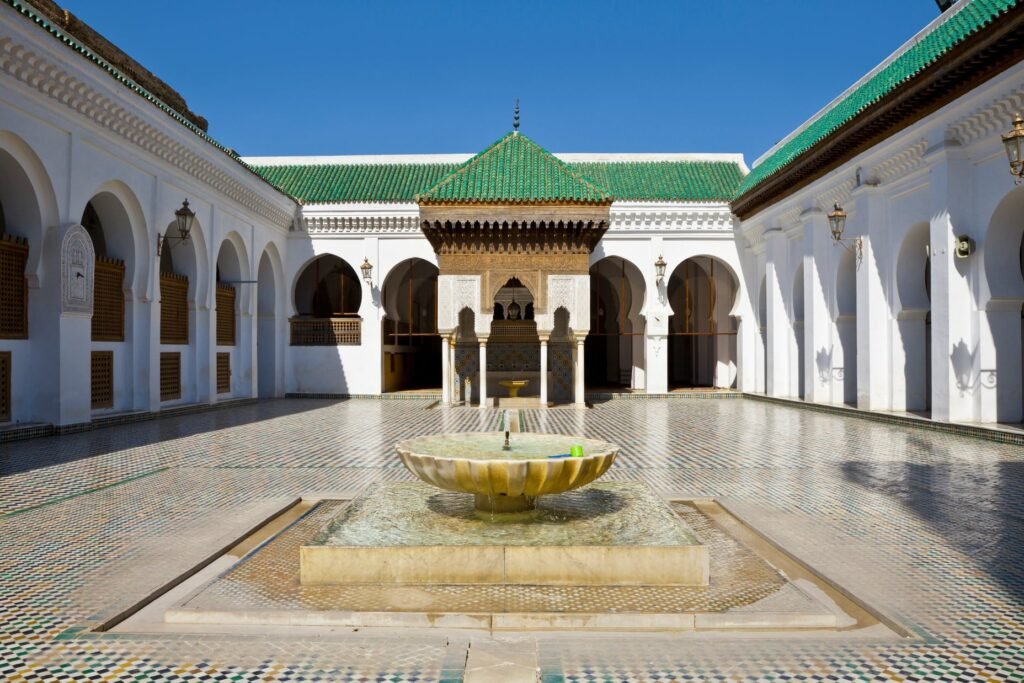 Quaraouiyine Oldest known and documented MD degree delivered in the worldAn original manuscript by Ibn Rochd on Maliki jurisprudence written in Andalusian style calligraphy at the al-Qarawiyyin mosque9th century Quran written on leather with Kufic calligraphy at Al-Qarawiyyin library.