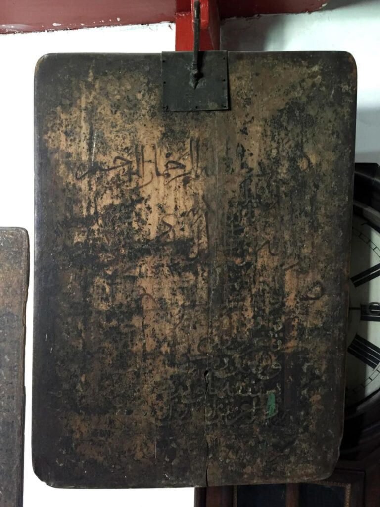 A plank of wood that is said to Fatima al-Fihri’s diploma, founder of Al-Qarawiyyin.Al-Qarawiyyin universitydecorated wood-carved frames and arches