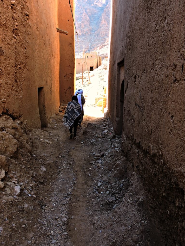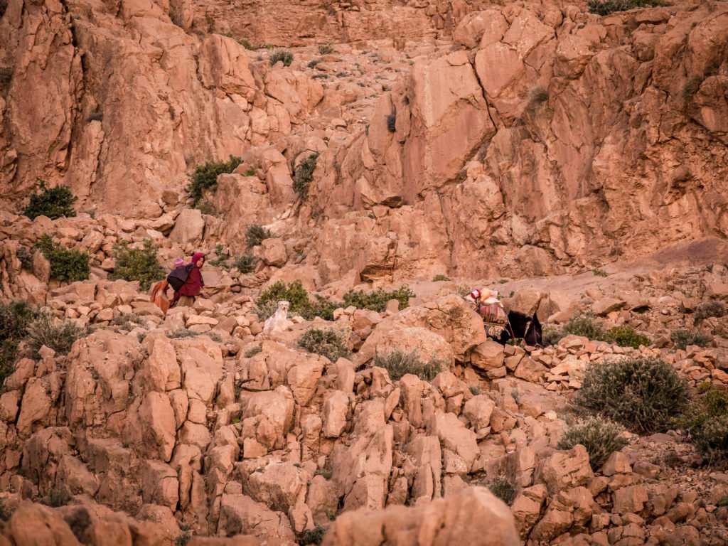 Todra Gorges, also known as Gorges du Toudra or Toudgha Gorges, is located in the High Atlas Mountains, resting between Tinghir and Tamtettoucht. The entire region being awe-inspiring, it is sure you will be astonished by its natural beauty. The scenery is incredible. A lush green oasis stretched several hundred meters across the valley. Within the oasis there is a livelihood of farmland, livestock and small villages. Children played together in the fields and on the river bank. It is nice to find a sense of community in such a desolate location.Visible from as far as Tinghir city, the closer you drive towards Todra Gorges within the canyons, the narrower the road becomes. These enormous rock formations create a natural road passage as narrow as 20 meters in width and 300 meters tall ideal for who love climbing. When you arrive to the top (that is’nt so easy) you flatten out nicely. You will think that It well worth the climb as the view is incredible. You can see 360 degrees around you , as well as the villages and oasis below.